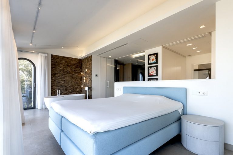 La villa se encuentra perfectamente resguardada del viento de levante gracias a su ubicación, integrada en la roca y orientada al sureste.