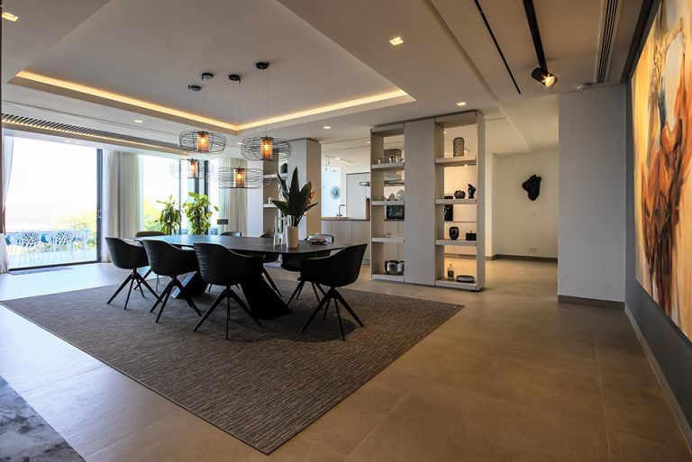 Decorada con un estilo moderno y elegante, la villa se distribuye en tres plantas: