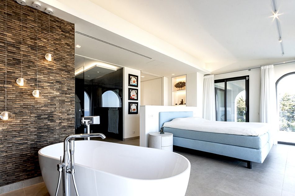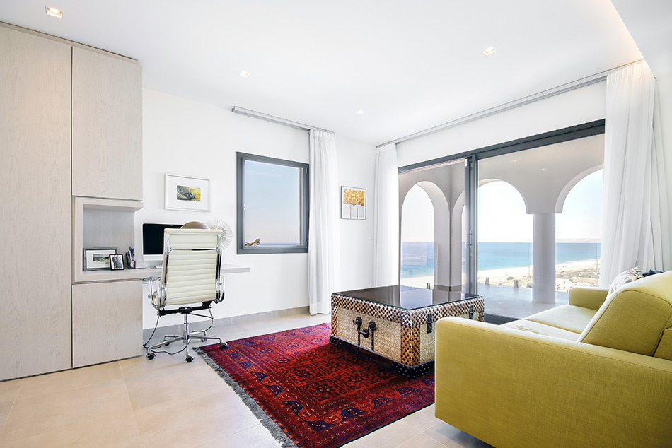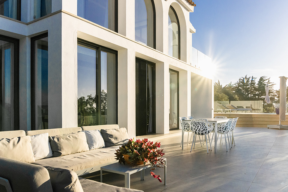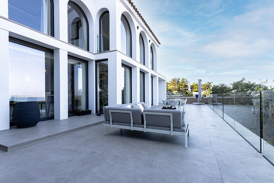 La villa se encuentra perfectamente resguardada del viento de levante gracias a su ubicación, integrada en la roca y orientada al sureste.
